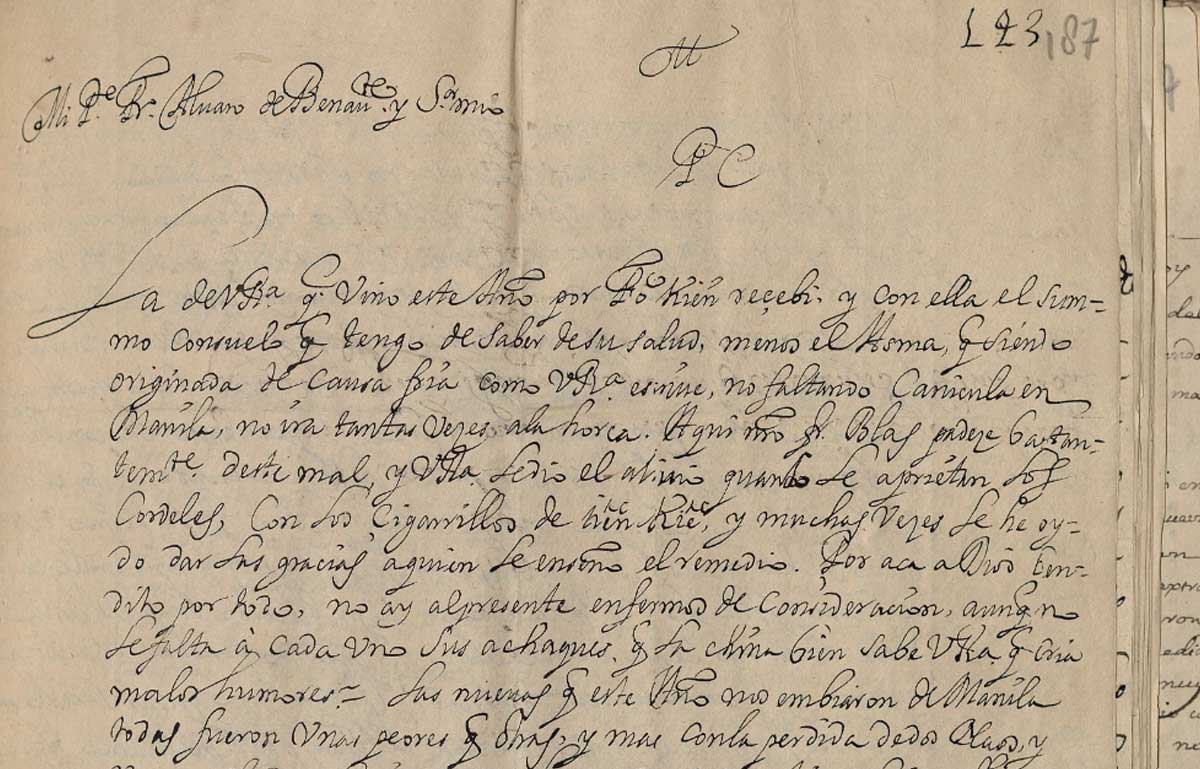 On November 20, 1694, Fray Jaime Tarin, the Franciscan provincial commissary in Canton (now Guangzhou), wrote a correspondence to Fray Álvaro de Benavente, a high-ranking Augustinian who was the titular bishop of Ascalón and the apostolic vicar of Kiangsi (now Jiangxi).1 At Tarin’s time of writing, Benavente was in Manila. Fray Tarin’s letter is considerably short, having only a length of three pages. Yet the letter’s conciseness should not put off those who are looking for interesting material. Indeed, along with many other contents of the San Agustin Convent’s library digitally reconstructed and repatriated by the collaboration of different international institutions,2 the information that can be extracted from Tarin’s letter invites careful and critical scrutiny.